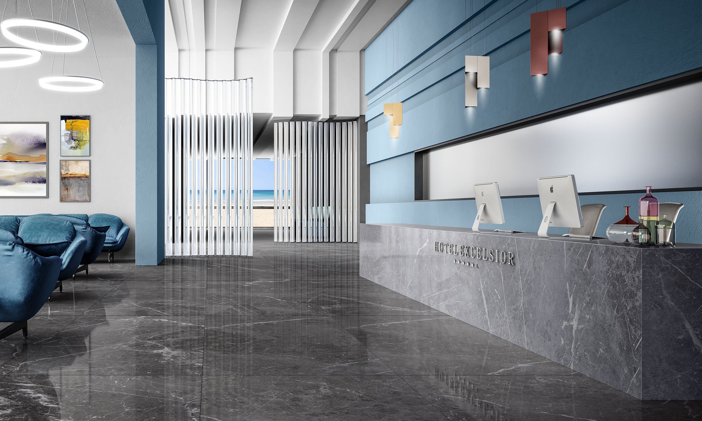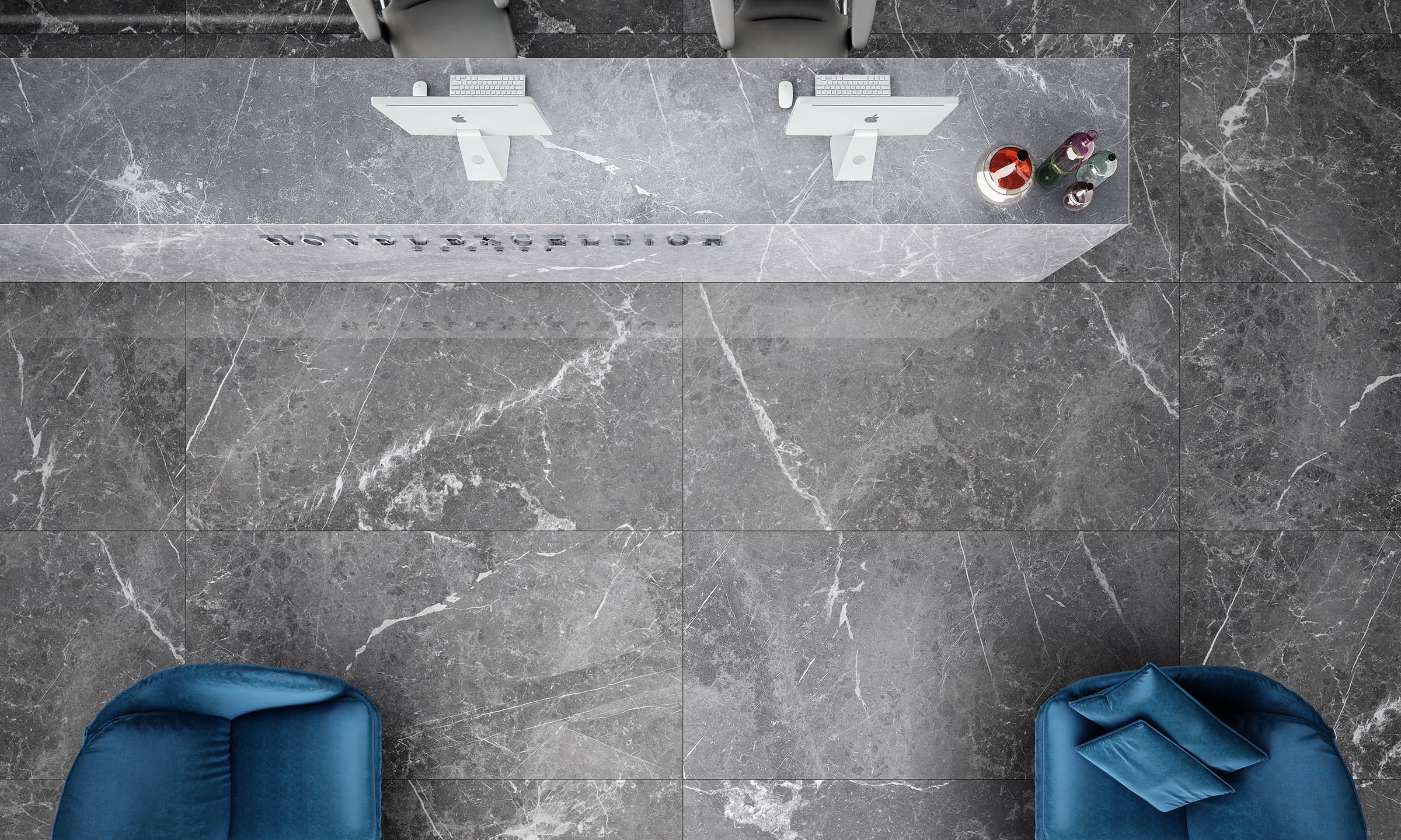 design your luxury interiors with a timeless charm. A wide and varied range of collections inspired by the elegance of marble to offer hundreds of solutions for residential areas, hospitality industry and business places. Revised classy marble and granite patterns displaying elegant veins which remodel your spaces, creating sophisticated ambiances. When you chose a marble looking tile collection, you chose the timeless beauty of one of the finest material in nature, combining it with all the advantages of porcelain and ceramic tiles in terms of performance, durability and ease of laying and maintenance.