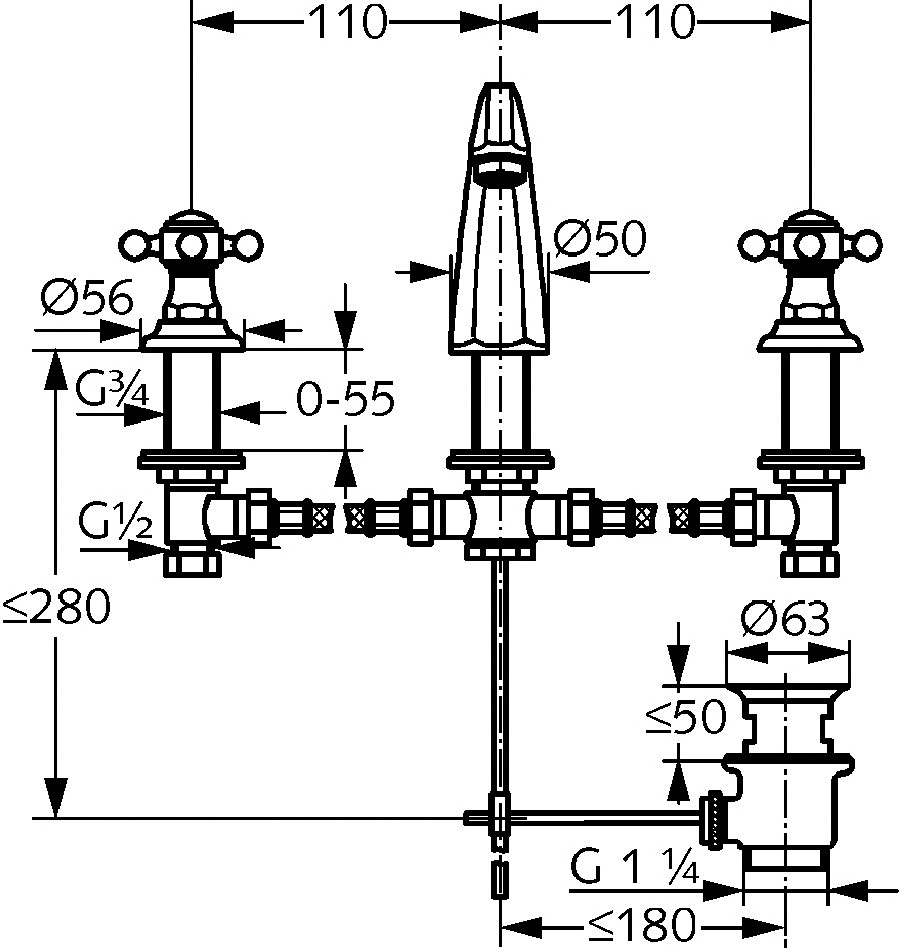 three hole deck mounted