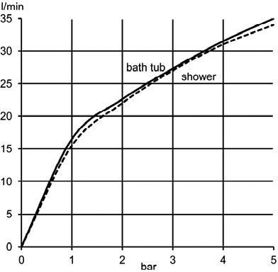 flow-rate bath tub 27.3 ltr/min at 3 bar