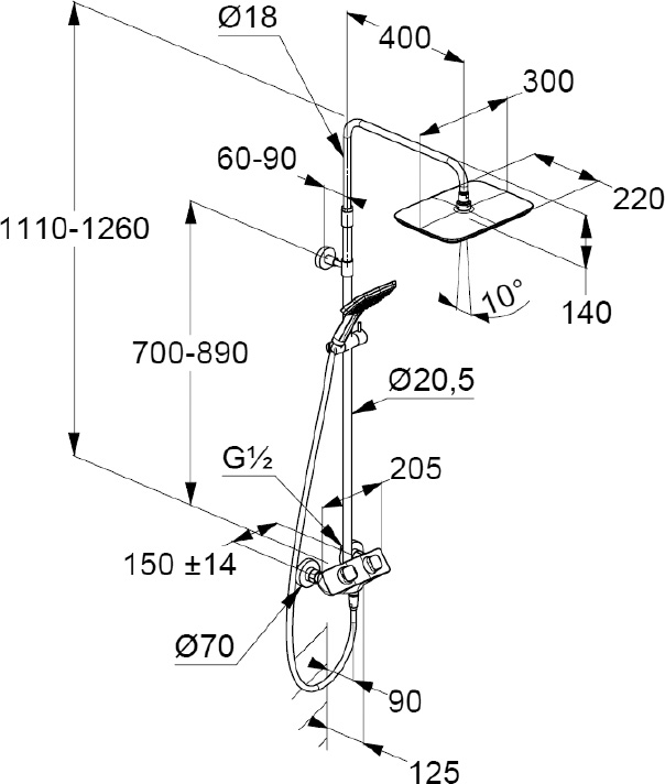 KLUDI COCKPIT EXPLORER DUAL SHOWER SYSTEM DN 15 8005005-00