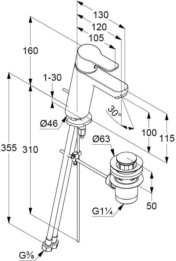KLUDI PURE&EASY single lever basin mixer 100 DN 15 371900565