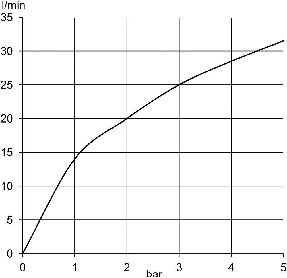 flow-rate at 3 bar = 25 ltr/min