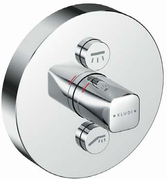 Trim set with functional unit with pushbutton for control by two consumers ceramic rotary cartridge with hot water limitation cover plate150 mm without concealed installation set 88011