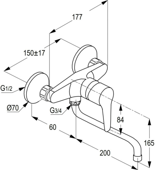 POLARIS wall-mounted single lever sink mixer RAK10008