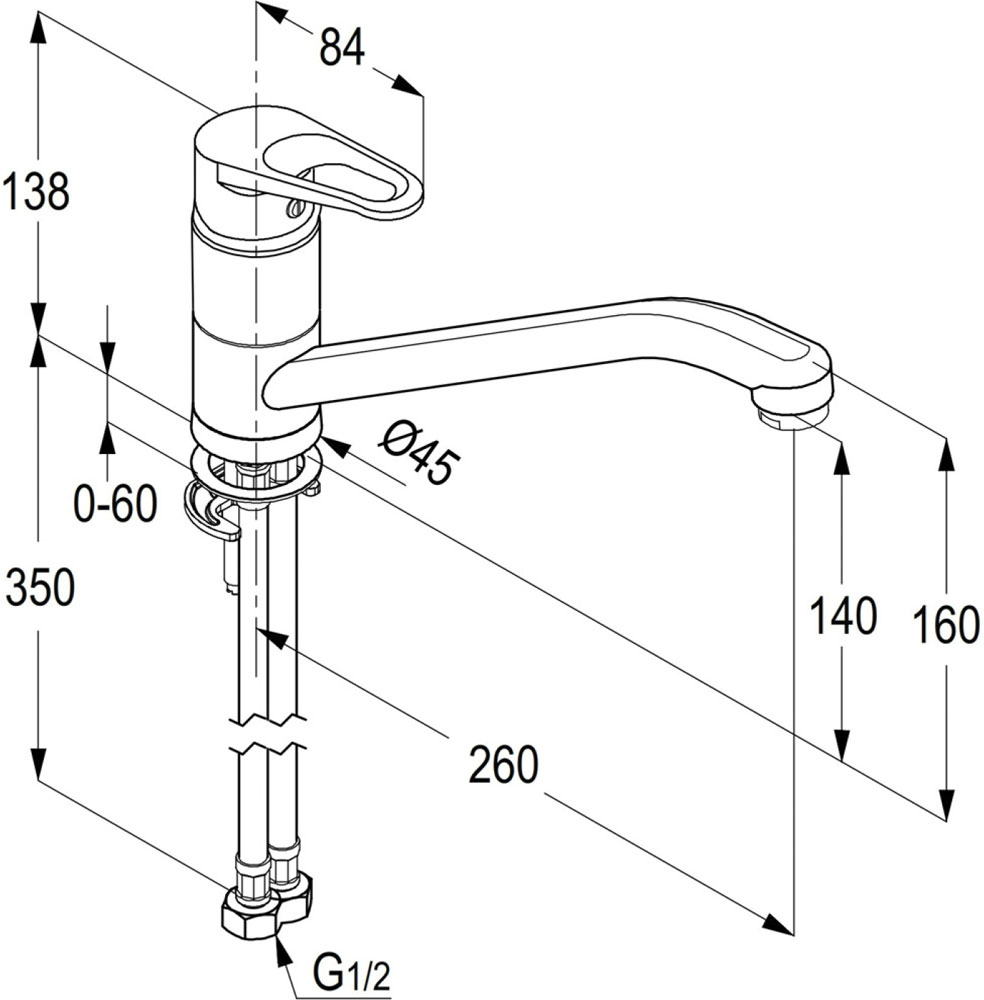 swivel long spout L = 260 mm